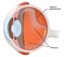 Retinal tears can lead to a retinal detachment. Fluid vitreous, passing through the tear, lifts the retina off the back of the eye like wallpaper peeling off a wall. Laser surgery or cryotherapy (freezing) are often used to seal retinal tears and prevent detachment.